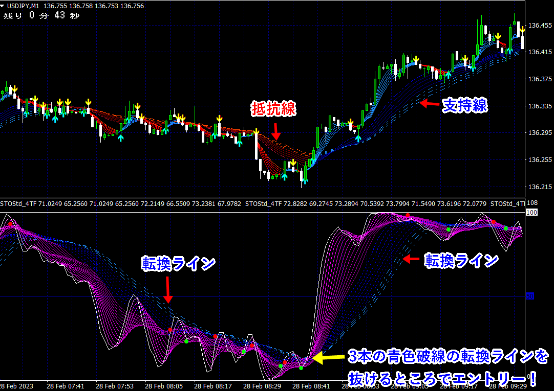 ★ 転換ラインを上抜け・下抜けでエントリー!(画像クリックで拡大)