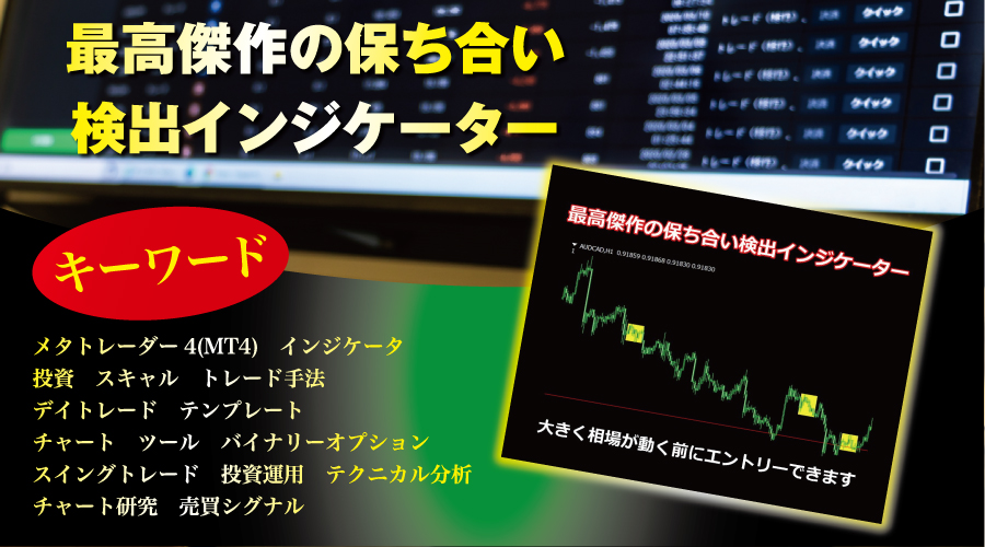 最高傑作の保ち合い検出インジケーター。保ち合い状態の箇所を検出します。保ち合い状態の後、上下のどちらかに大きくブレイクします。