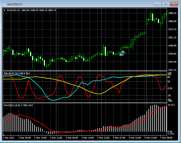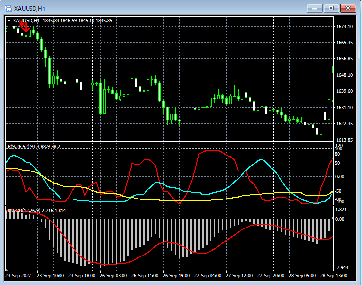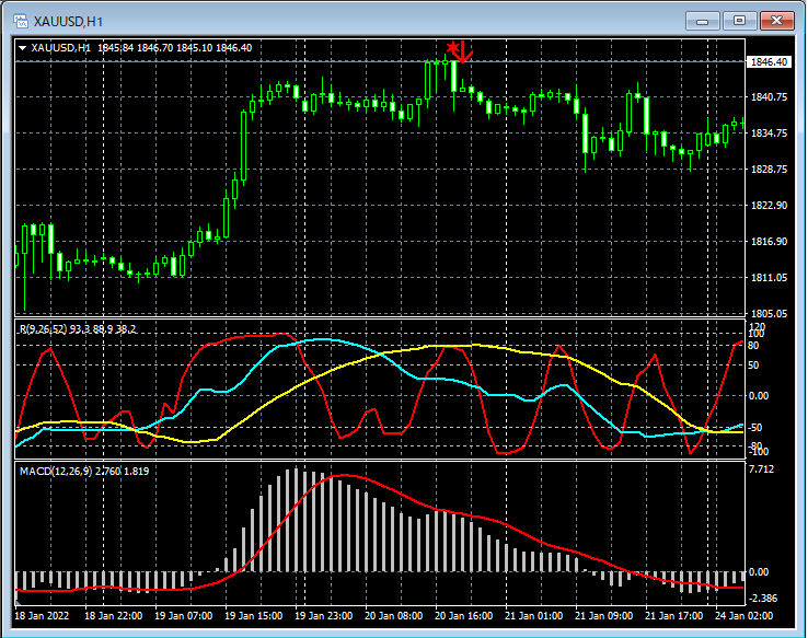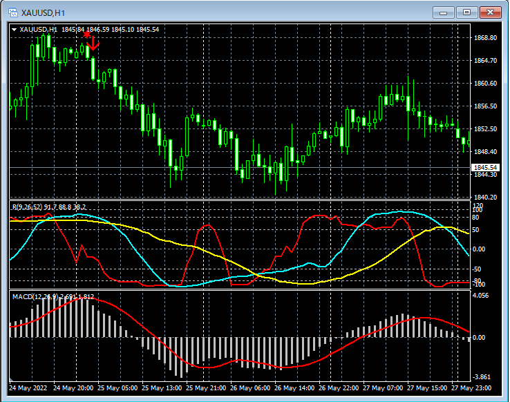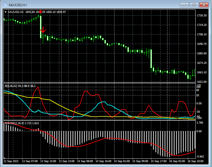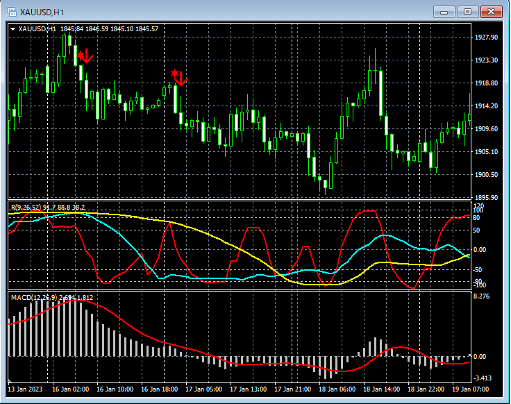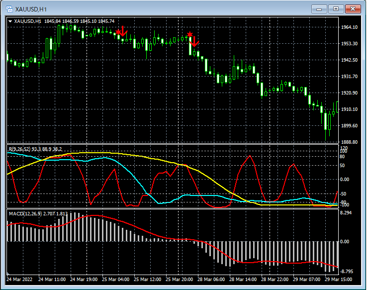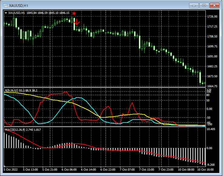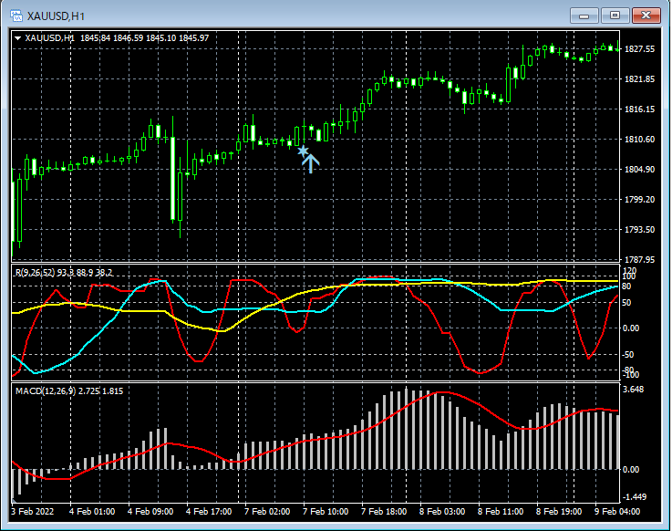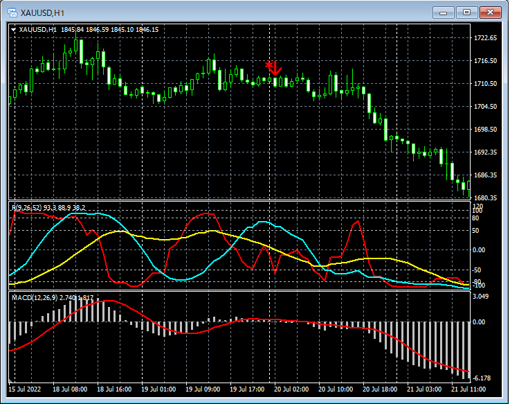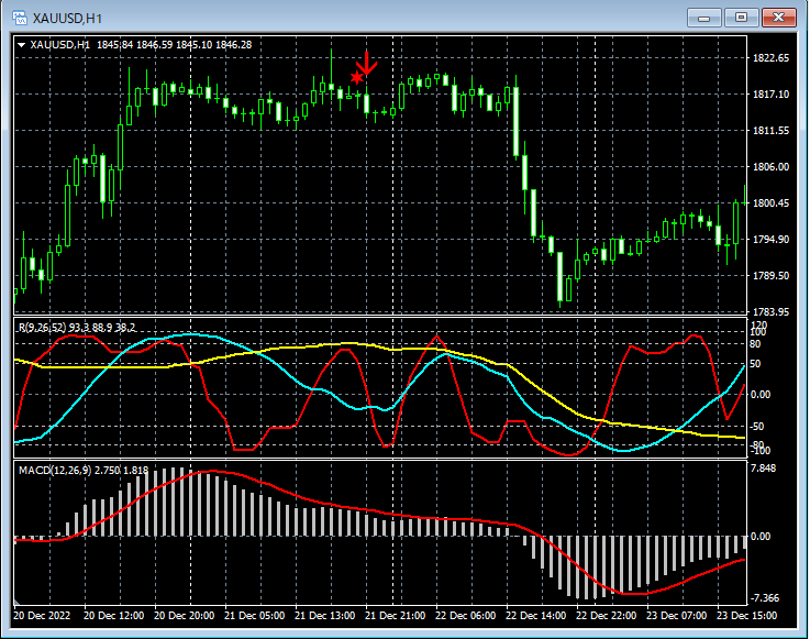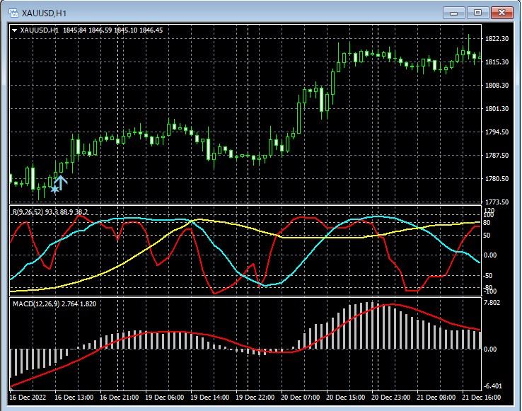 RCI3本とMACDのゴールデンクロス,デッドクロスに着目したインジケーター チャート例(15) XAUUSD ゴールド 1時間足