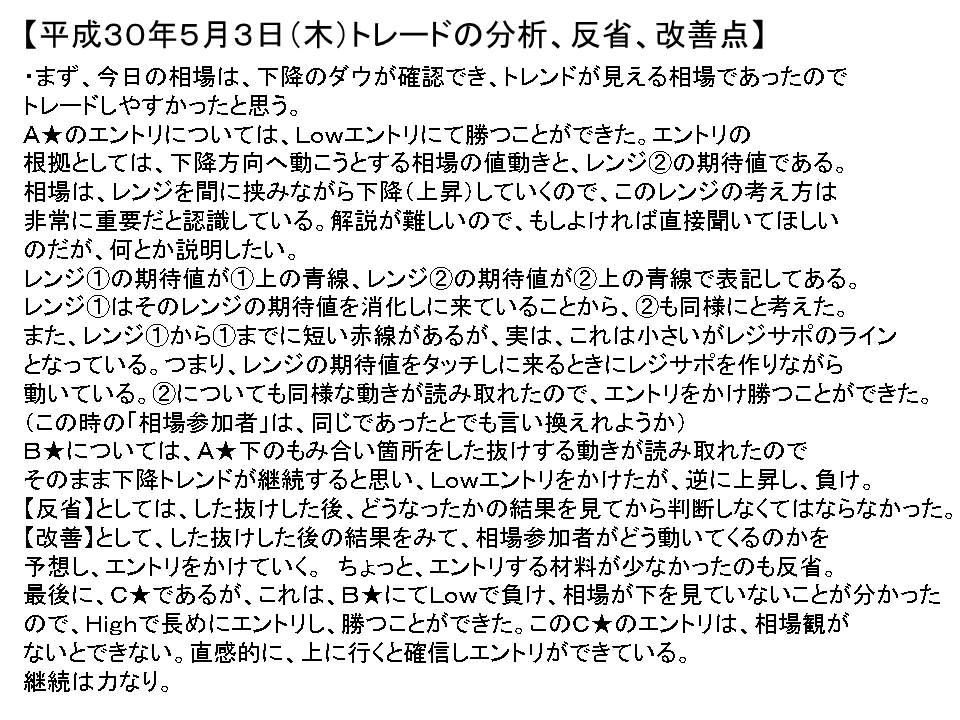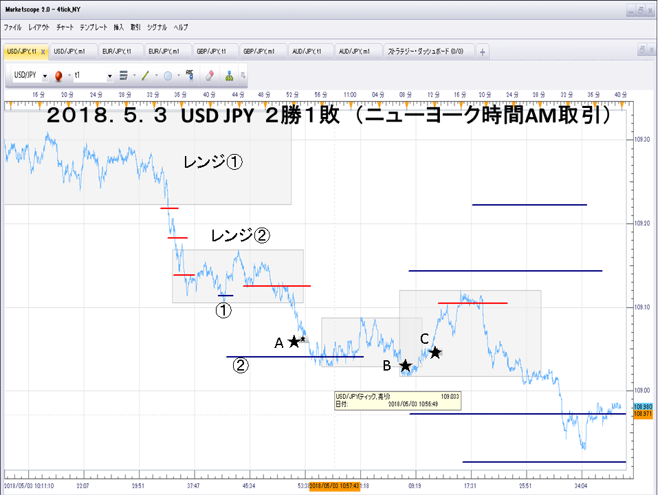 【レンジ×値動き】2018.5.3 USD JPY 2勝1敗 (ニューヨーク時間AM取引)