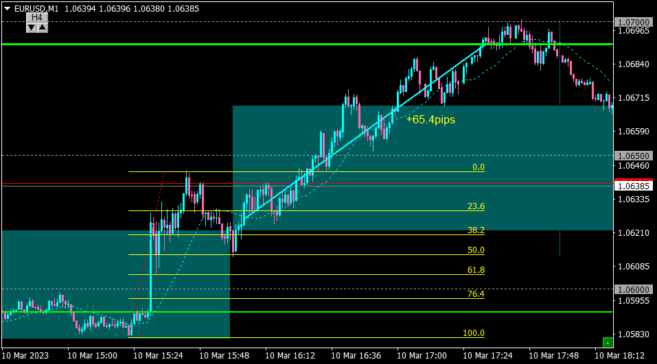 金曜は雇用統計の発表後、スプレッドが十分小さくなってから押し目をロング。1.070の節目でイグジット。+65pips