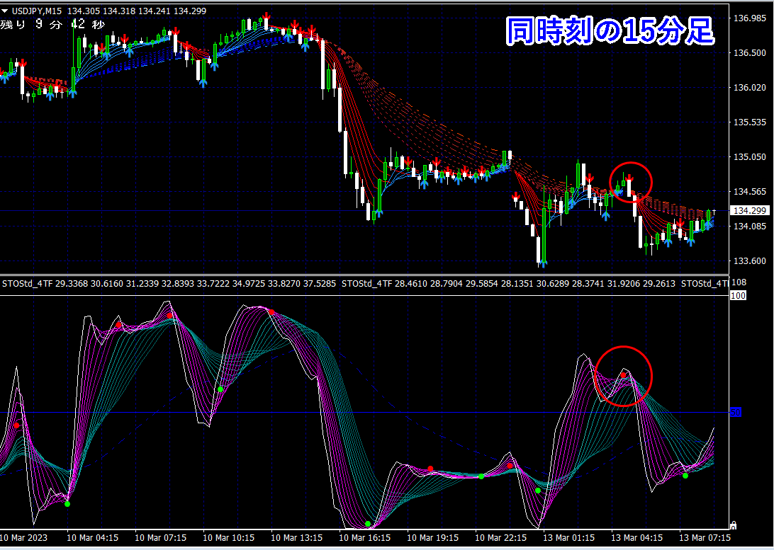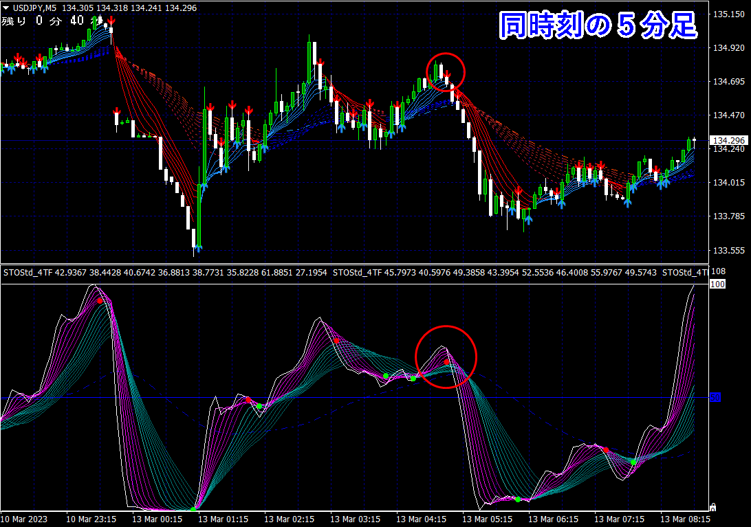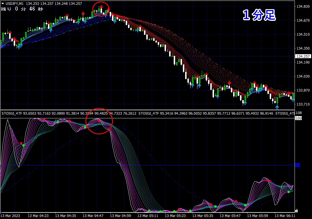 ※ 1分足用インジケーターとして説明しておりますが、当インジケーターは