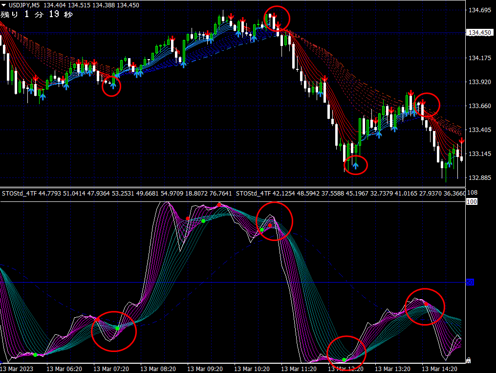 ※ 1分足用インジケーターとして説明しておりますが、当インジケーターは