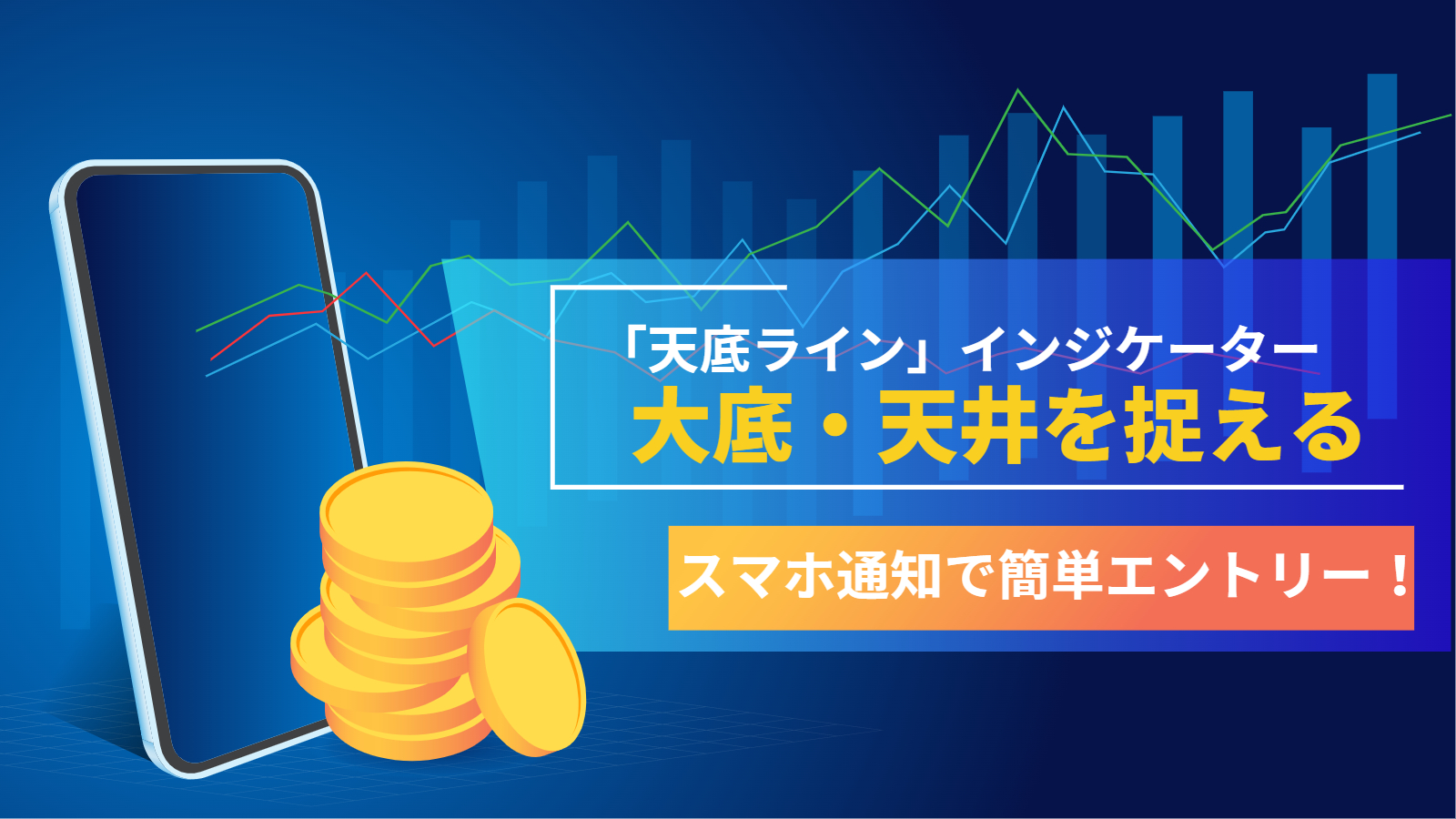 「天底ライン」絶妙なタイミングで大底・天井を捉えるFXインジケーター!秘伝の○○ロジックを搭載!アラート通知あり。