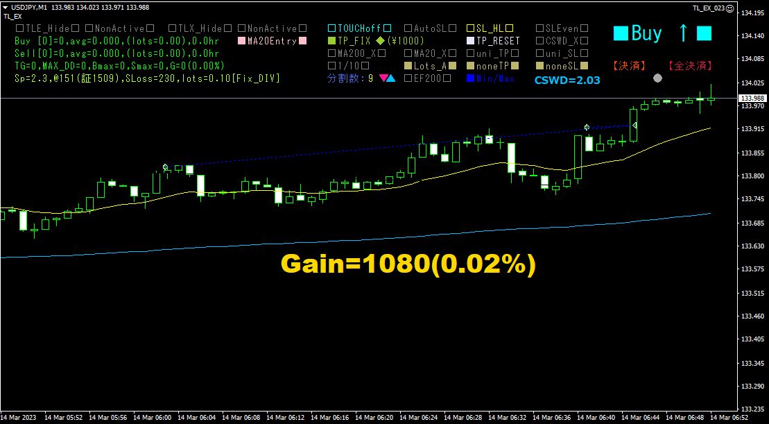 分割エントリーエントリー機能が付与されたので、1分足スキャルピング等の短い時間足トレードに対して「Trend Line EX」が使えるようになりました。