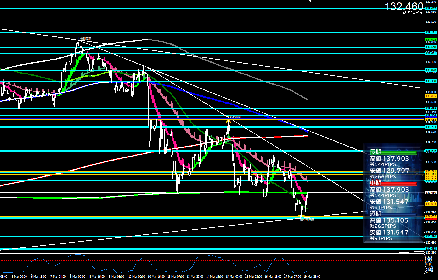 ①131.547円ブレイクはシンプルな安値更新。132.053円を抜けたらカット。130円台を目指します。