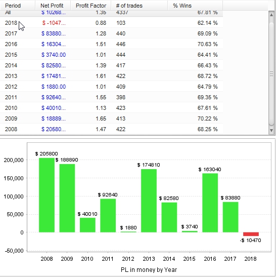 1ポジなのでレバレッジを効かして運用することができますし、取引回数も年間400回以上と多いので複利運用でも良い結果が期待できそうです。