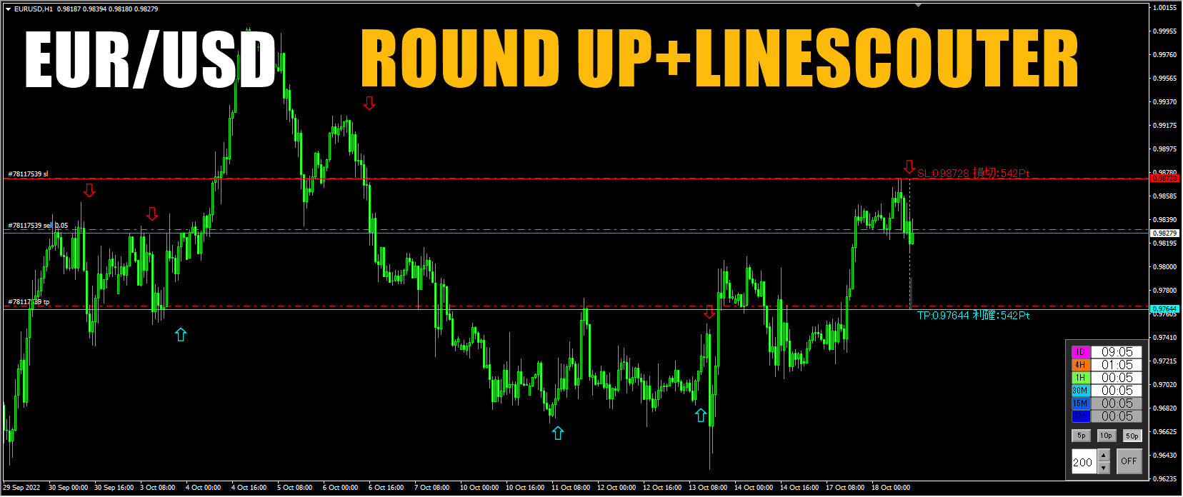 1時間足も同様に「ROUNDO UP」のサインがでました。
