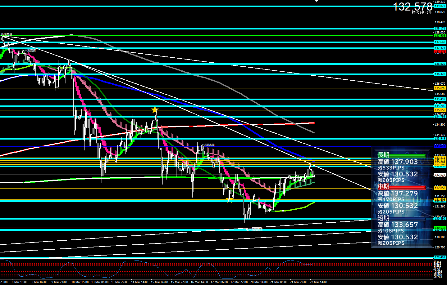 ③130.463円~130.890円付近は下にブレイクして、130円前半や129円台タッチからこのゾーンを上抜けたらカウンタートレード。