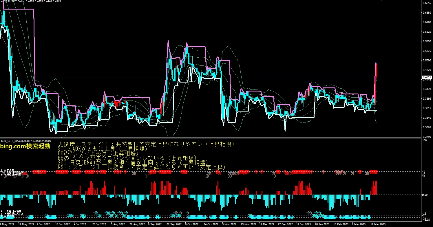 XRPUSDTの日足チャートにおいて、