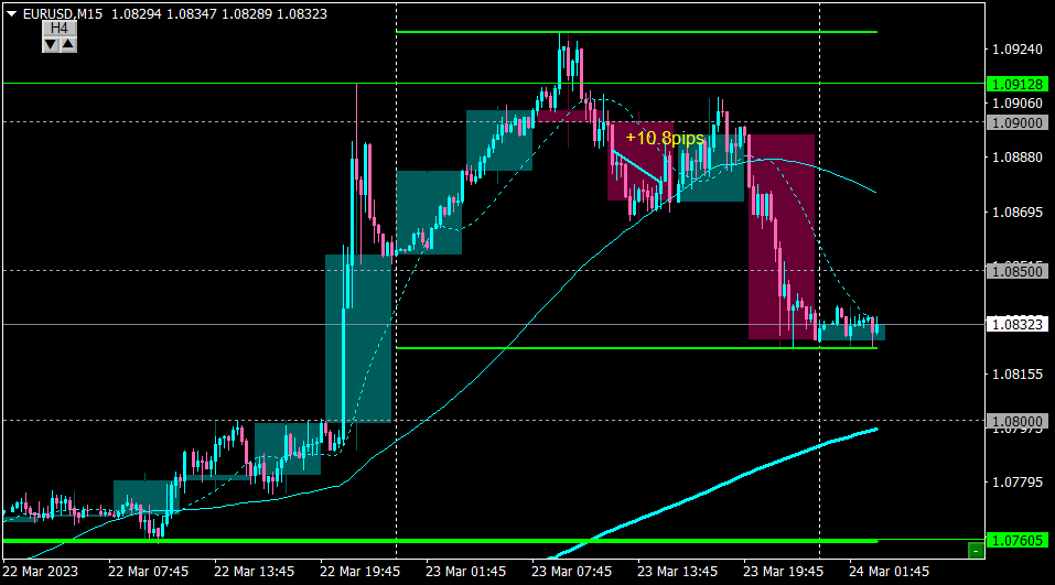 H1MAを抜けるかに注目していたが、反発しそうだったのでイグジット。+10pips
