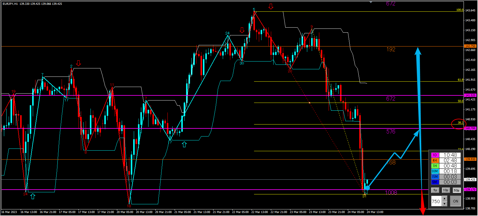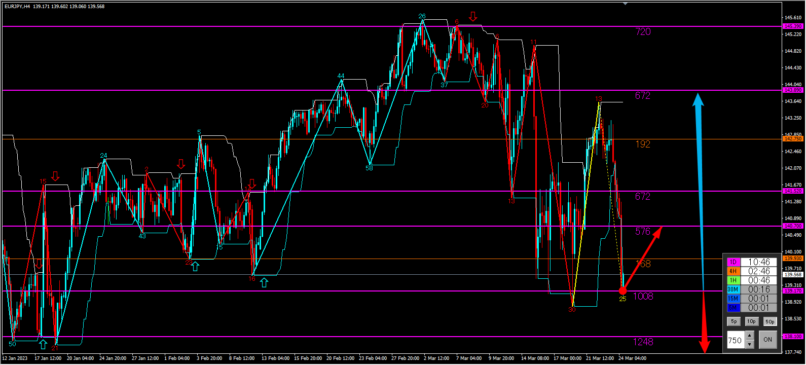 一段下にさらに強い紫ライン(1248)も待ち構えているので、このまま軽い返しを付けて下落することも考えられます。