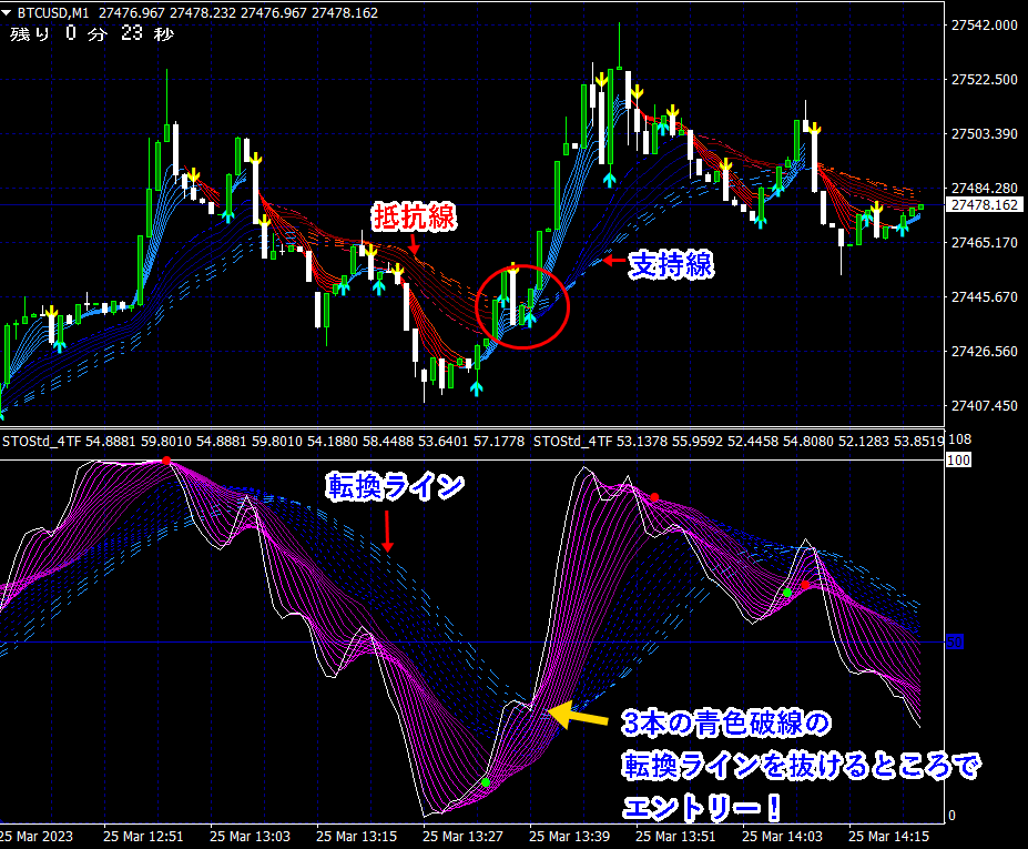★ 転換ラインを上抜け・下抜けでエントリー!(画像クリックで拡大)