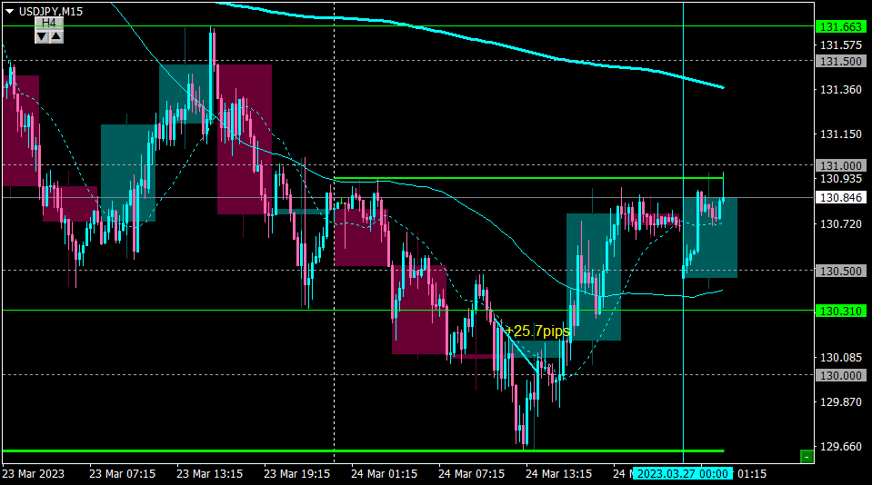 金曜日は節目と考えていた130.50を割り込んだので、戻りを待ってショート。