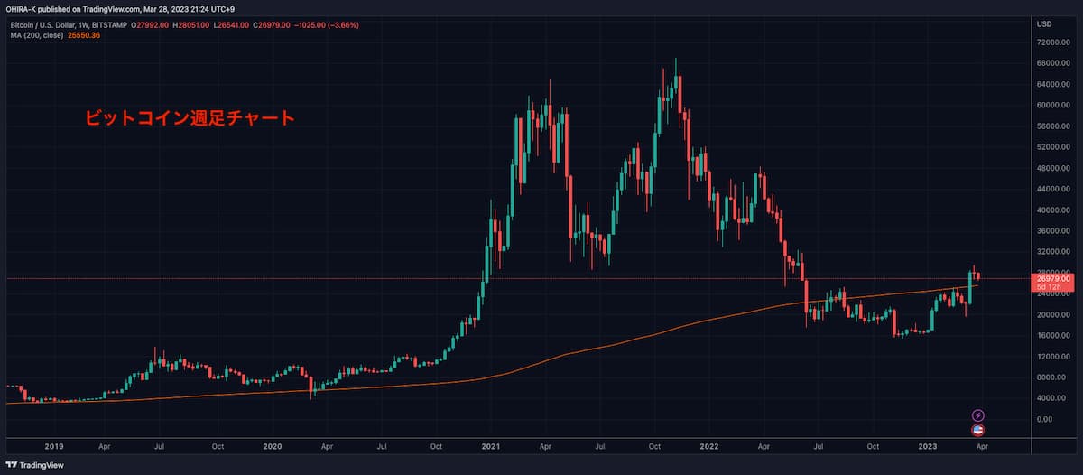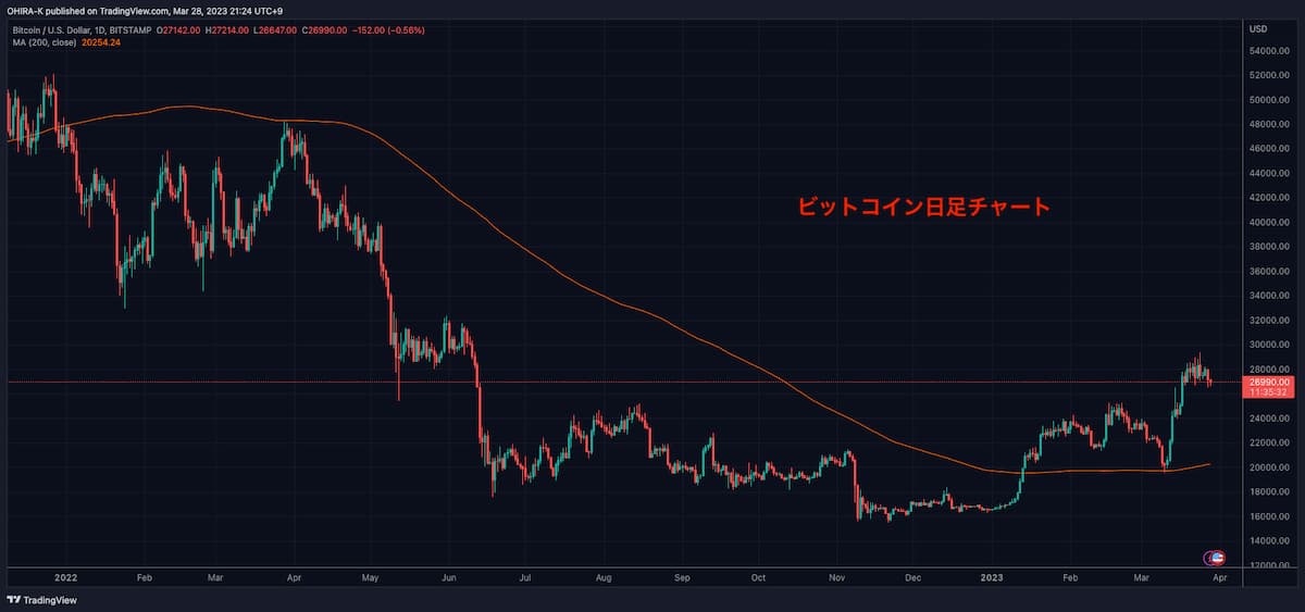 先週年内最高価格の28000ドルを記録しましたが、その後30000ドル近くまで上昇し、跳ね返されてやや下落しています。