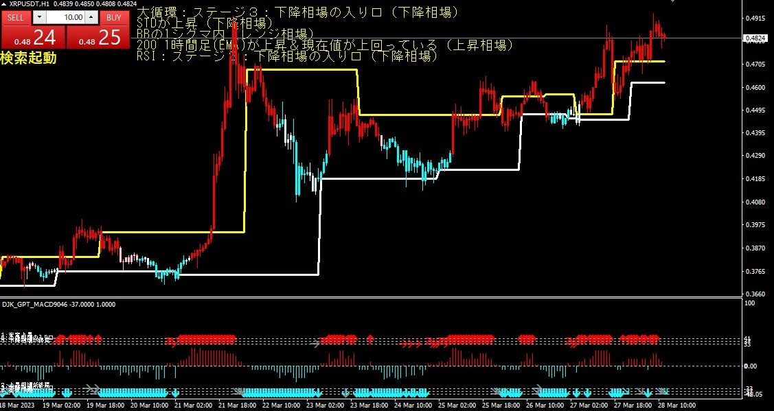 - 標準偏差レンジとADXがともに上昇しており、上昇相場であることが示されています。