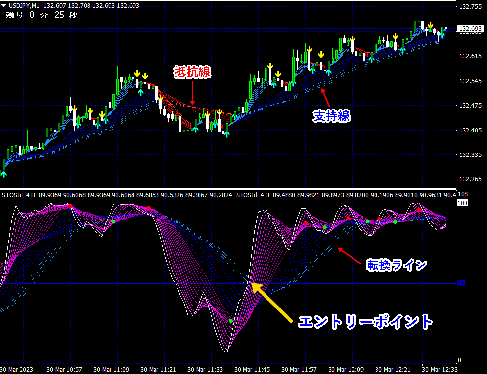 ★ 転換ラインを上抜け・下抜けでエントリー!(画像クリックで拡大)