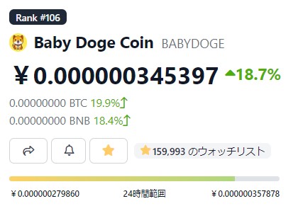 ワンチャン狙いで全力で投資するには非常に魅力があるBabyDoge。
