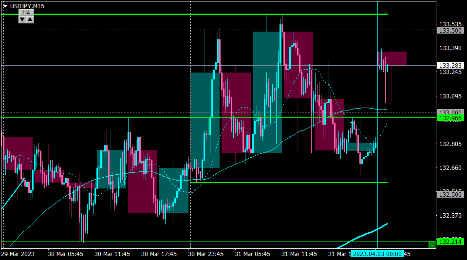 金曜は注目していた節目133.0を上抜いたが、すぐ上の日足MAが強いレジスタンスになる可能性を考えてノートレード。