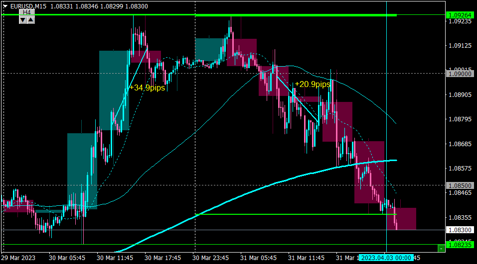 節目になりそうな1.0860付近で反発しかけたのでイグジット+20pips