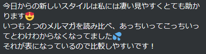昨日から仕様変更しましたがさっそく感想を頂きました。