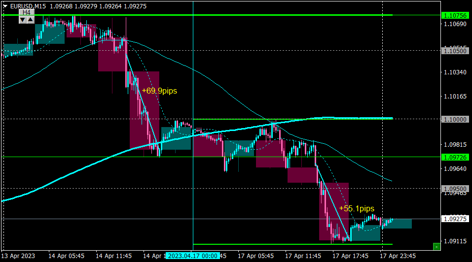H4の足のクローズでイグジット。+55pips