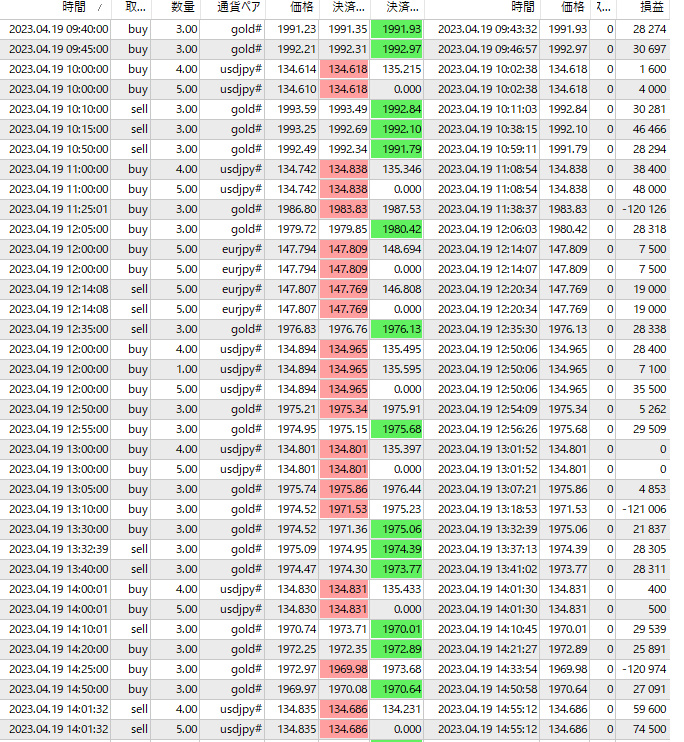 エントリーはEAで、利確は付属のインジケーターを使い利確をいたします。 EAの方はTPおっかけ機能がついていますが、利確は手動がお勧めです。EAですとTPの追っかけに引っ掛かりかなり利益が減ります。(儲けは出ていますが、少ないです。)