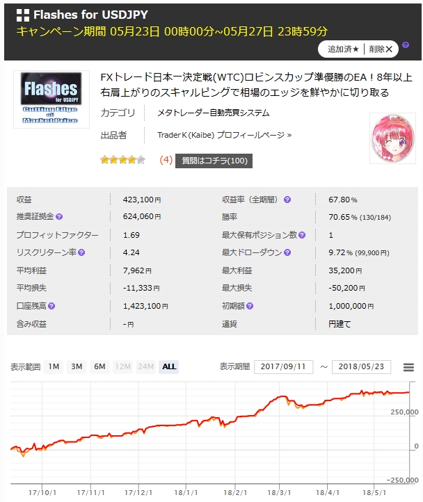 人気、実力ともに今注目の『Flashes for USDJPY』