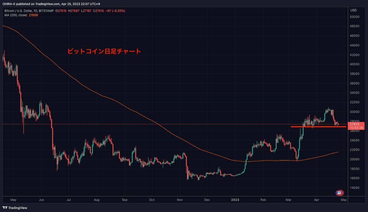 ビットコイン 27400ドル(-7%)