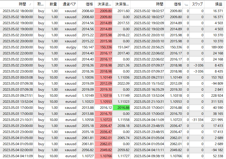 無裁量の方はTPおっかけ機能がついていますが、利確は手動(インジケーター)がお勧めです。無裁量ですとTPの追っかけに引っ掛かりかなり利益が減ります。(儲けは出ていますが、少ないです。)