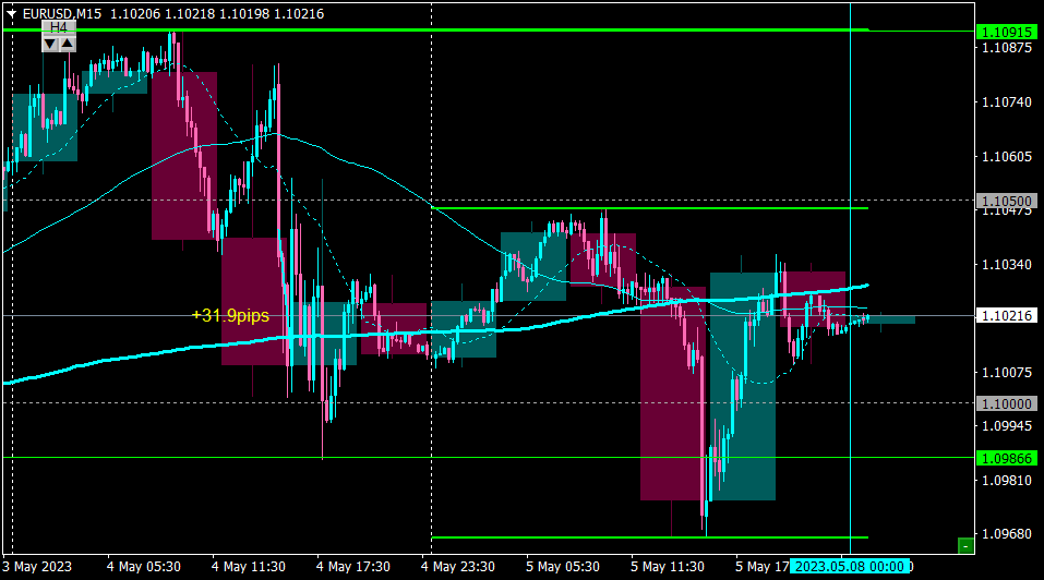 〇前日のトレード・USDJPY ドル円(15分足)昨日は先週安値141.50付近での値動きにとどまったためノートレード。・EURUSD ユーロドル(15分足)昨日は1.090付近でのプライスアクション