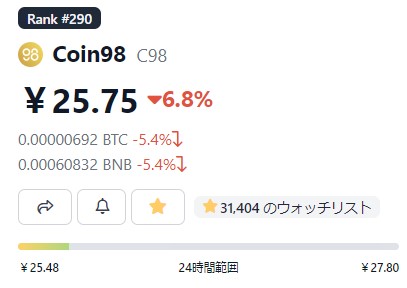 このCoin98のツイートで知った仮想通貨もあるよ。