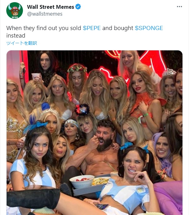 PEPEを売ってSPONGEを買ったらこうなるよって誰かがツイートしてて、それをスポンジボブがリツイートしてるw