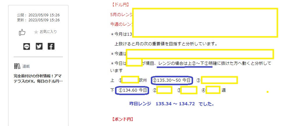 *昨日記事です。レンジ分析値 135.30/50 ~ 134.60に対して、