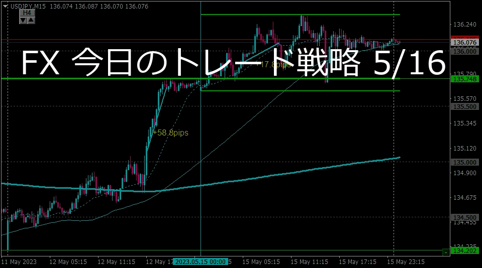 昨日は先週高値の135.75が意識されて上昇するところでエントリーしたかったが、ちょうど21:30の指標発表と重なりエントリーできず。