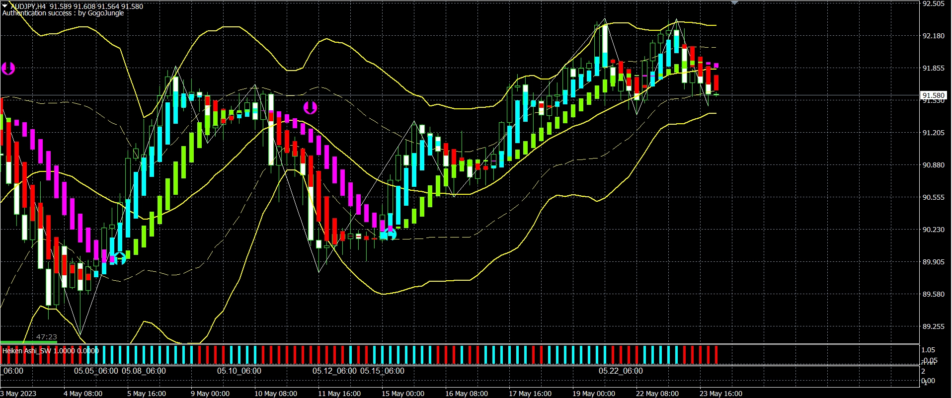 豪ドル円は昨日91.35売り逆指値がヒットし売りポジションとなり、今朝先ほど91.1で決済しました。