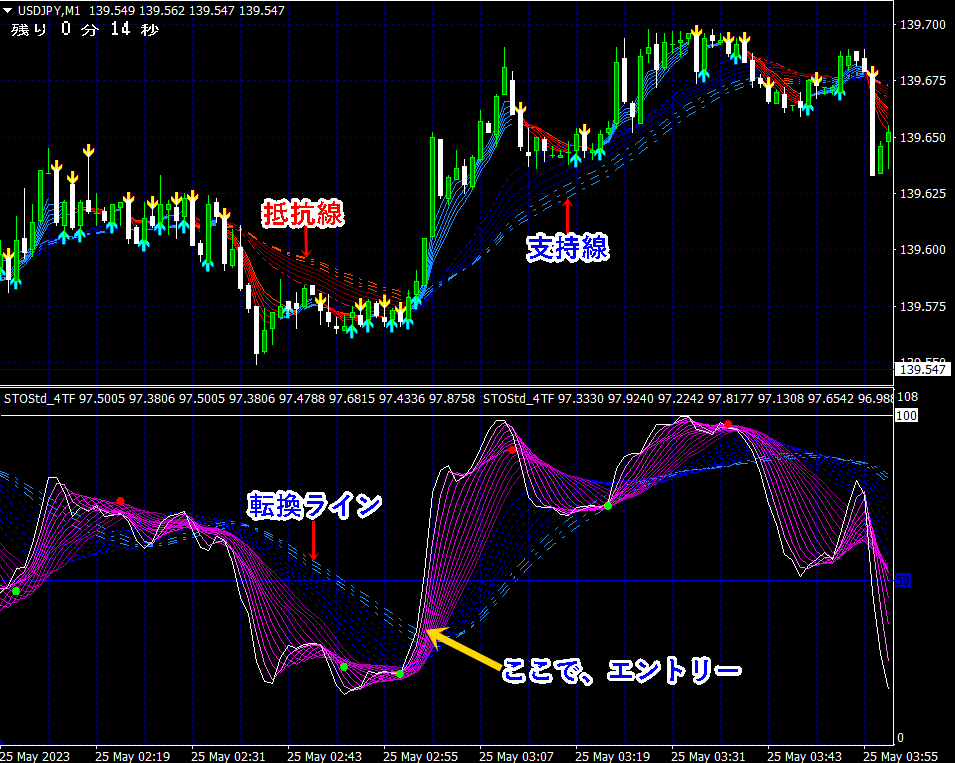★ 上抜け・下抜けの転換ラインで確実なエントリー!(画像クリックで拡大)