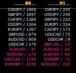この中から選ぶとしたらCHF/JPYが5分足、1時間足ともに上位でありそれを選び