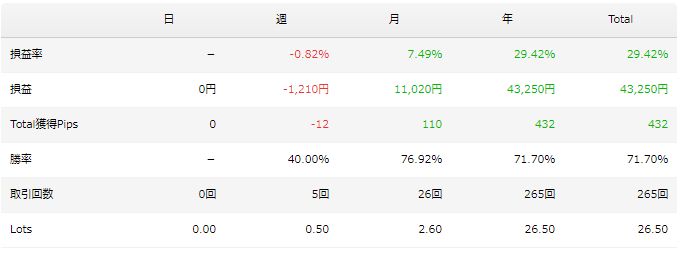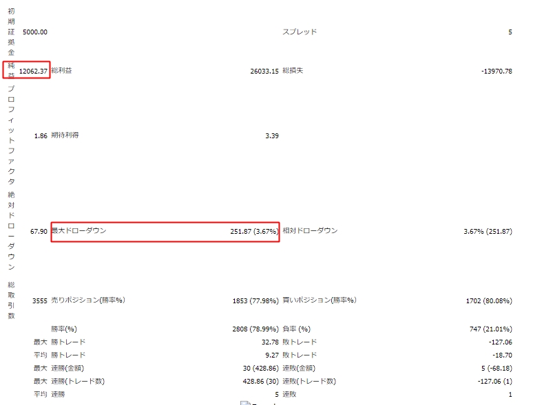2ポジでありながら最大ドローダウンが0.1ロットあたり251ドルと低いのが魅力ですね。