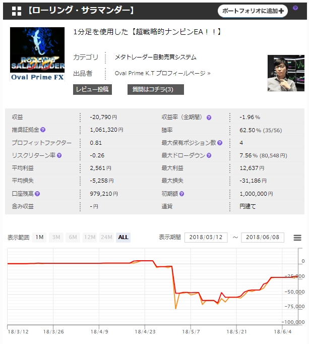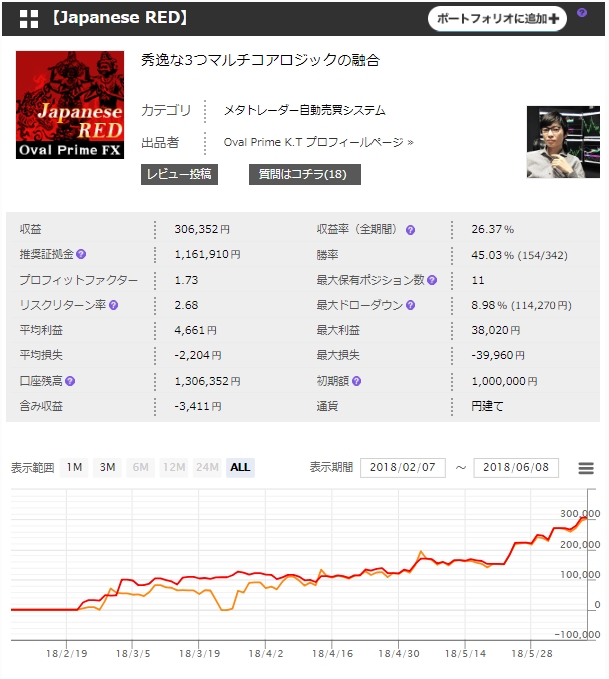 特記事項:チャートの波動を取っていくEAの為 含み益、含み損が中期的に発生いたします。