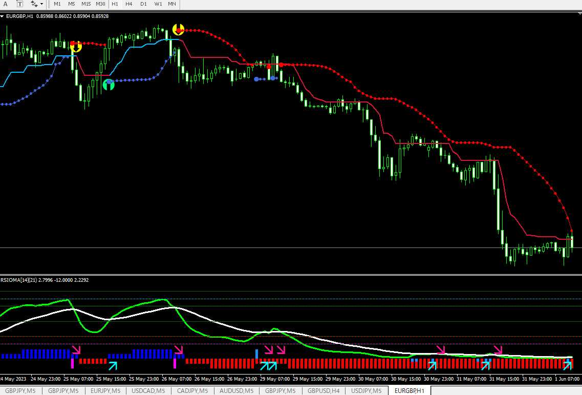 ふたつの時間足でEUR/GBPが下位に来ており、チャートを表示してみると、