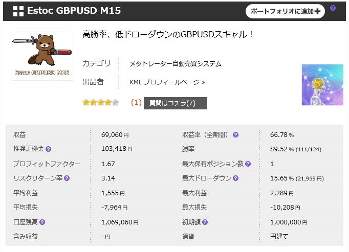 特記事項:チャートの波動を取っていくEAの為 含み益、含み損が中期的に発生いたします。