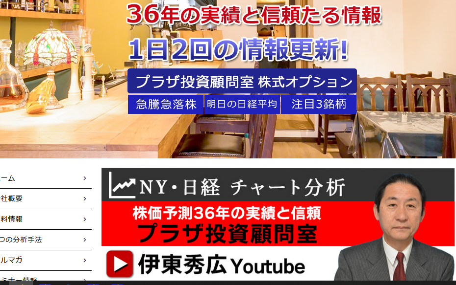 日経CNBCのマーケット解説、トレーダーのみならず、多くの証券アナリストの方々にもご利用いただいている株式会社プラザ投資顧問室です。