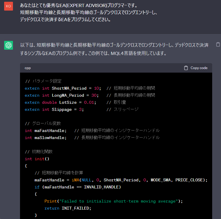 上記のコードはChatGPTが自動で生成してくれたんですよ。