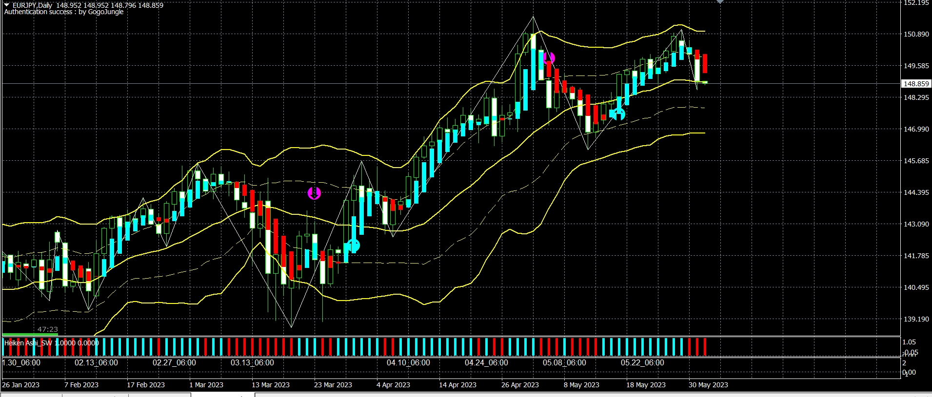 ドル円は買いポジションがリミット141.00を達成し+95pipsとなっております。豪ドル円は買いポジションを昨日4時間足18時の終値95.75で決済し+40pipsとなっております。