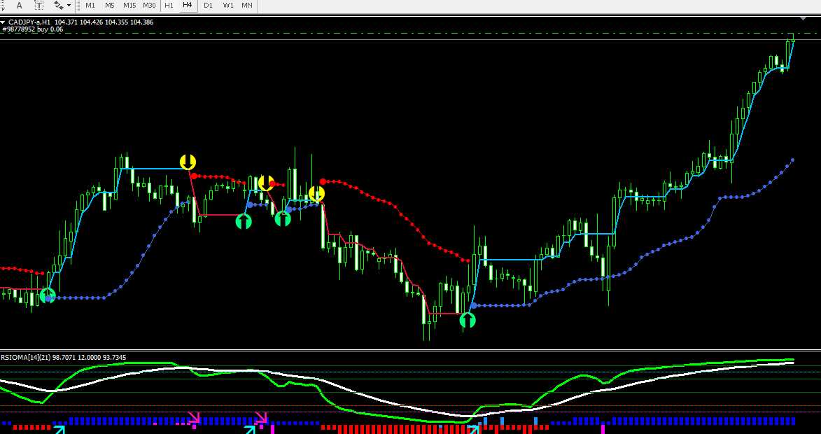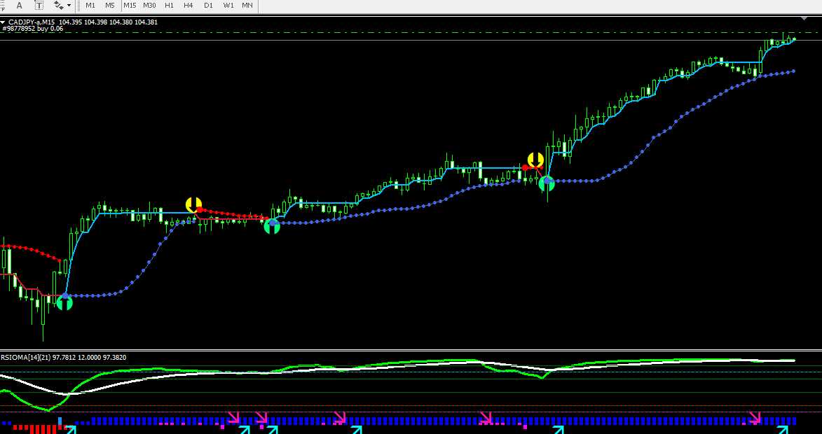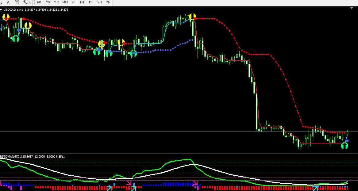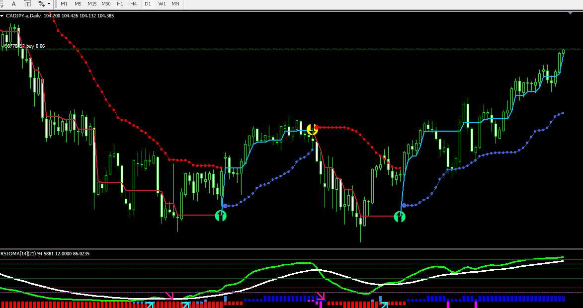 ※ 追撃ドットの連続ラインがローソク足から離れていればいるほど、トレンドは強く継続していくものとなります。