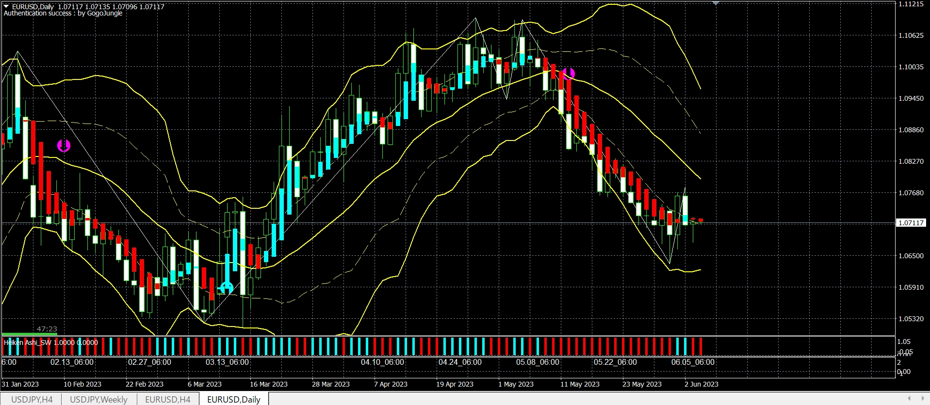 ユーロドルは売りポジションを昨夜10時の終値1.0671で決済。