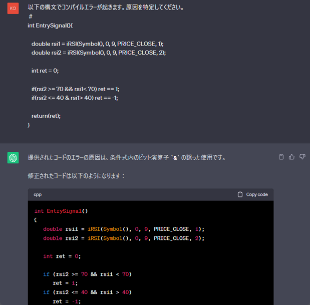 コンパイルエラーが起こる構文をChatGPTに張り付けたのですが、