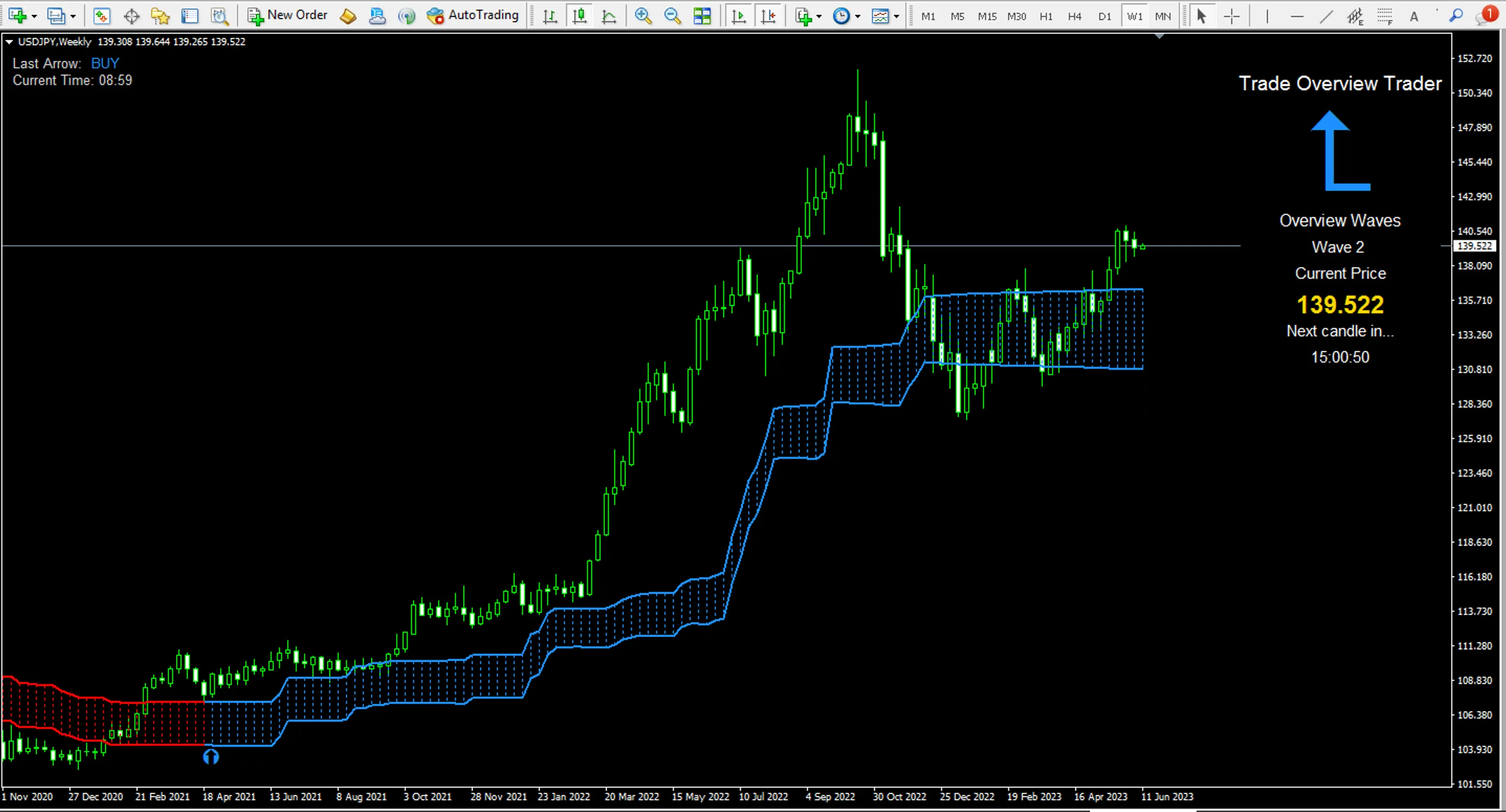 下のチャートはドル円の週足