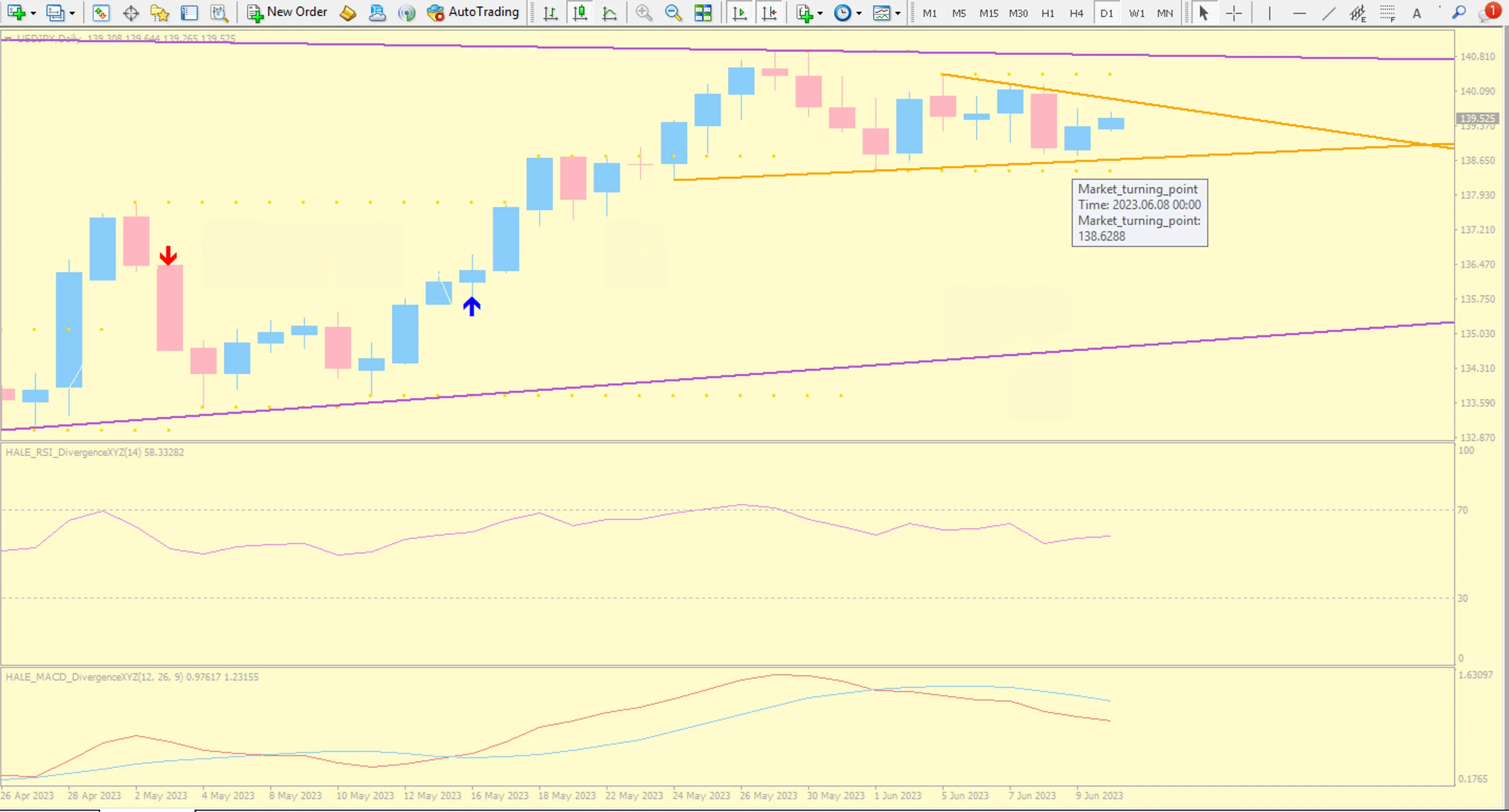 下のチャートはドル円の日足です。